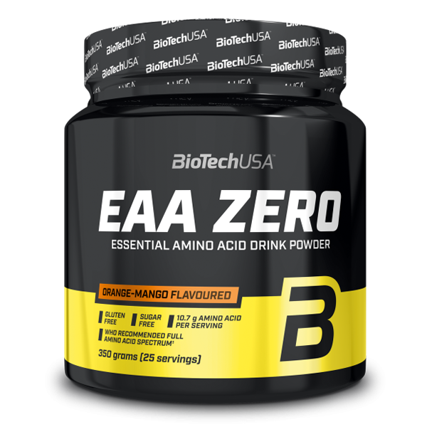 EAA (essentielle Aminosäuren) sind unverzichtbar für die Regeneration der Muskeln und spielen wichtige Rolle in viele Funktionen des Immunsystems und des Stoffwechsels. Da der Körper sie nicht selbst herstellen kann, müssen sie über eine ausgewogene Ernährung oder als Nahrungsergänzung aufgenommen werden. Viele Sportlern und Athleten nehmen EAAs Supplements, wenn die Proteinzufuhr nicht ausreichend oder nicht vollwertig ist. Die EAA Zero von BioTechUSA enthalten die BCAAs (Leucin, Isoleucin und Valin) und Glutamin in eine nahezu 1:1 Kombination und liefern ganze 7160 mg essentielle Aminosäuren pro Portion.
