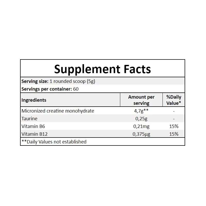 Nettogewicht: 300 g, Portionsgröße: 1 Messlöffel 5 g, Portionen pro Packung: 60