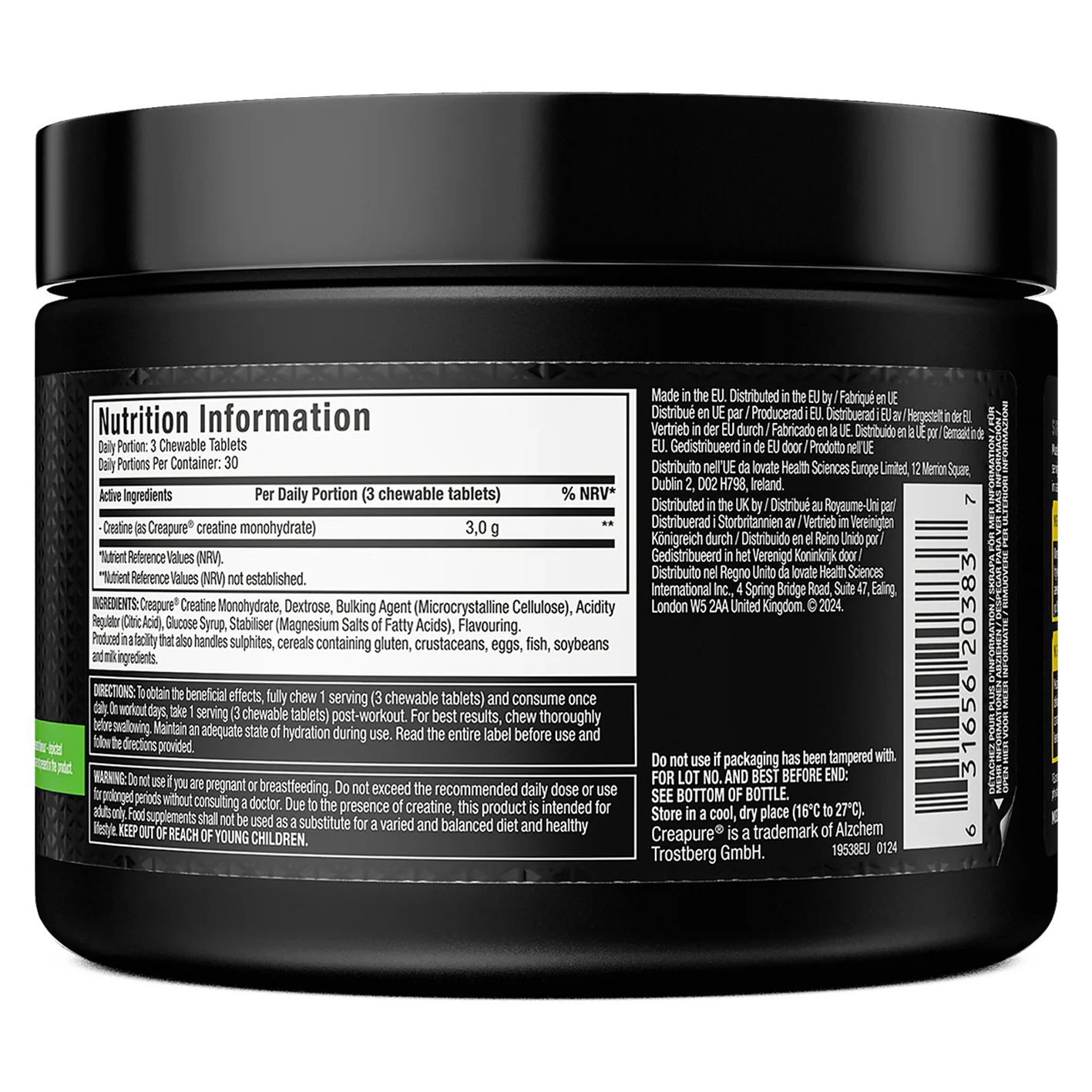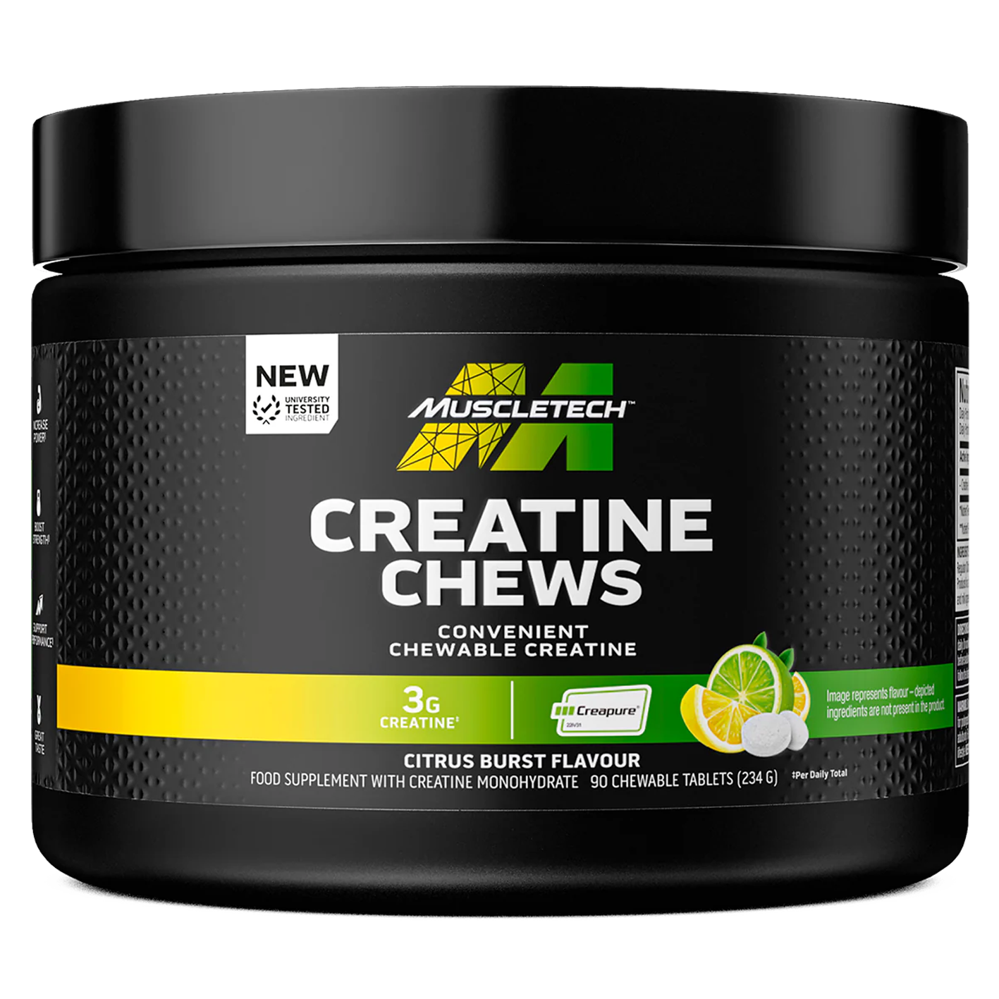 MuscleTech Creatine Chews bieten eine leistungsstarke Lösung für Athleten, die die Vorteile von Kreatin nutzen möchten, ohne Wasser, Shaker oder Pulver zu benötigen. Mit 3 Gramm Kreatin pro Portion liefern die Kautabletten nachweisbare Unterstützung für die Leistung bei aufeinanderfolgenden kurzen, hochintensiven Belastungen. Jede Portion enthält Creapure®, eine hochwertige, stark gereinigte Form von Kreatinmonohydrat, der von Spitzensportlern vertraut wird. Mit einem erfrischenden Zitrusgeschmack.