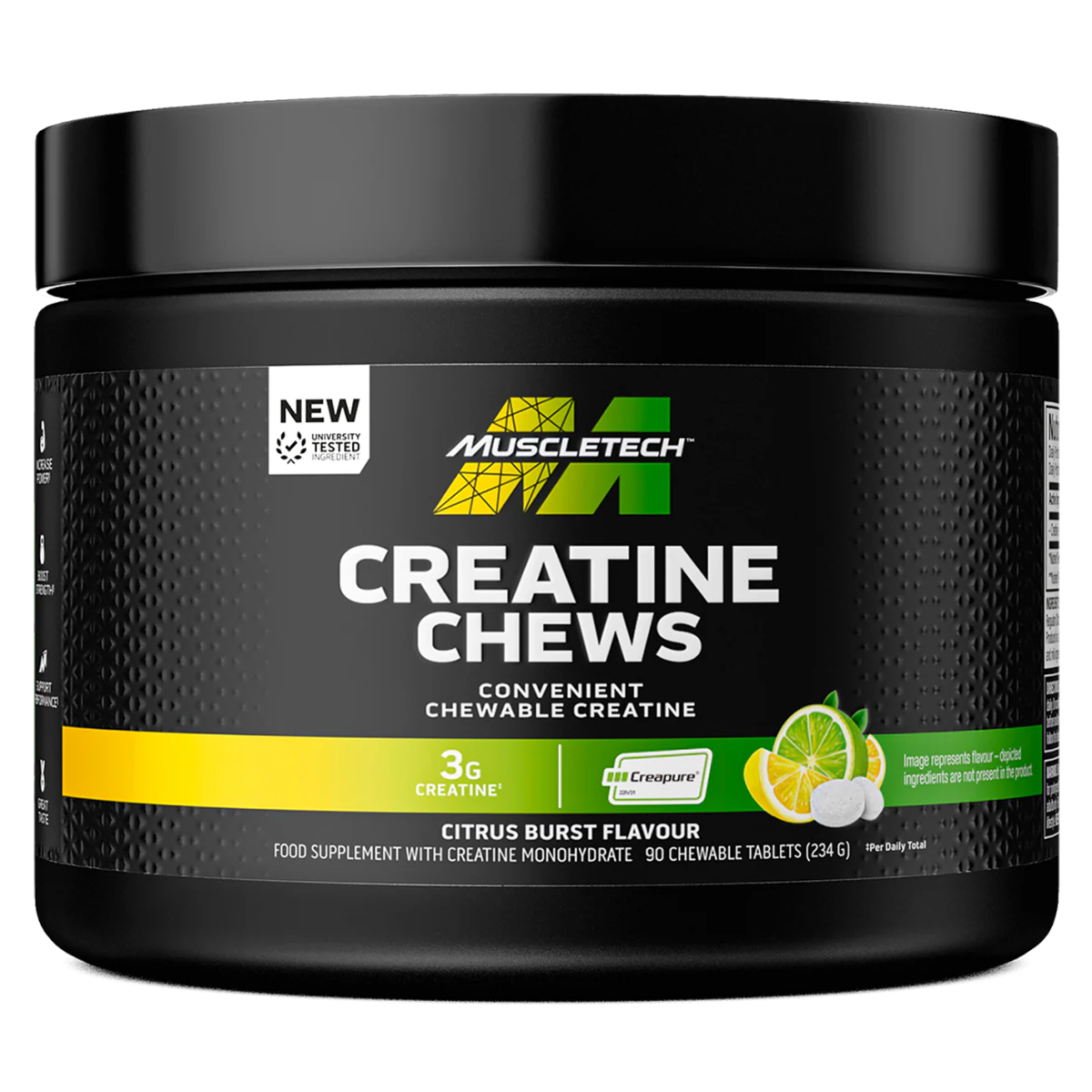 MuscleTech Creatine Chews bieten eine leistungsstarke Lösung für Athleten, die die Vorteile von Kreatin nutzen möchten, ohne Wasser, Shaker oder Pulver zu benötigen. Mit 3 Gramm Kreatin pro Portion liefern die Kautabletten nachweisbare Unterstützung für die Leistung bei aufeinanderfolgenden kurzen, hochintensiven Belastungen. Jede Portion enthält Creapure®, eine hochwertige, stark gereinigte Form von Kreatinmonohydrat, der von Spitzensportlern vertraut wird. Mit einem erfrischenden Zitrusgeschmack.