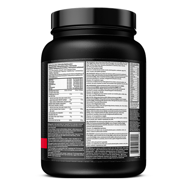 Zutaten: Molkeproteinmischung (98%), (Molkeproteinkonzentrat (Milch), Molkeproteinisolat (Milch), Molkeproteinkonzentrat-Hydrolisat (Milch), Aroma, Emulgator (Lecithine (Soja)), Verdickungsmittel (Guarkernmehl),Süßungsmittel (Acesulfam K, Sucralose), Natriumchlorid, Trennmittel (Calciumsilicat).